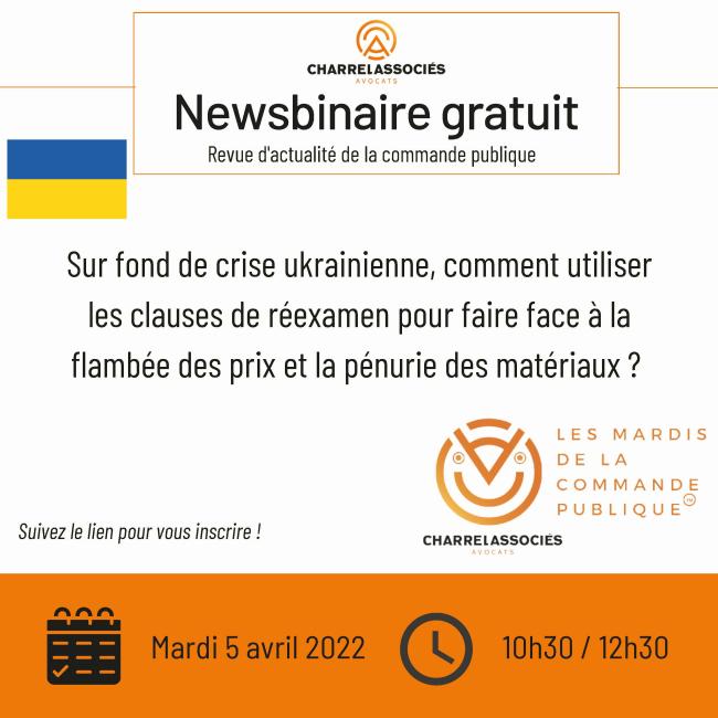 Newsbinaire "Les mardis de la commande publique" : sur fond de crise ukrainienne, comment utiliser les clauses de réexamen face à la flambée des prix et la pénurie des matériaux ?
